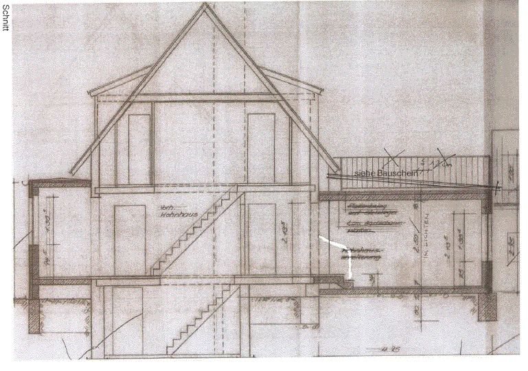 Der Anbau hat ein Flachdach. Kleiner Raum neben dem kleineren Zimmer ist jetzt Gäste-WC